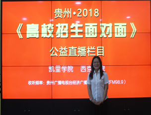 2018年5月14日,我院招生就业处刘利民副处长参加了“贵州.2018《高校招生面对面》”公益直播栏目。活动中,刘利民副处长就我院的基本情况、办学优势、办学特色、办学水平和学校在学生报考志愿、就业、帮扶、考研等方面的政策作了详细介绍。此次活动,对于宣传我院,促进学生、家长和社会对我院的了解和熟悉起了积极作用,促进我院招生工作的开展,达到了预期目的。